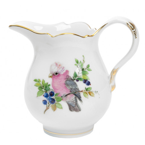 Milchkännchen, Form "Neuer Ausschnitt", Vintage Exotische Vogelmalerei, Motiv - Rosakakadu, Goldrand, V 0,15 l