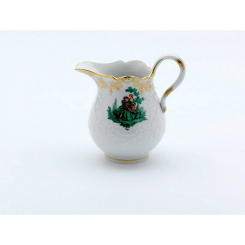Gießer, Figurenmalerei n.Watteau m.Blumen, kupfergrün, Golddekoration,Goldrand, 0,15 l