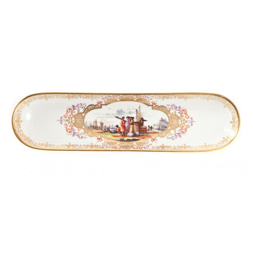 Schale, Seeprospektmalerei,bunt,gelb glasiert.Schild Nr.17,Goldk.Nr.67,Goldrd., L 24 cm