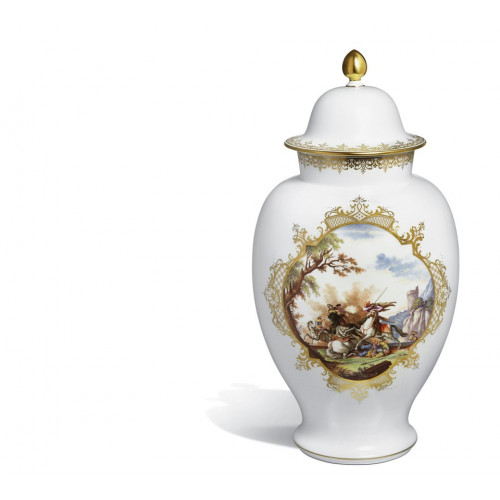 Deckelvase "Bataillenmalerei", Bataillenmalerei nach Wouvermann, H 50,5 cm