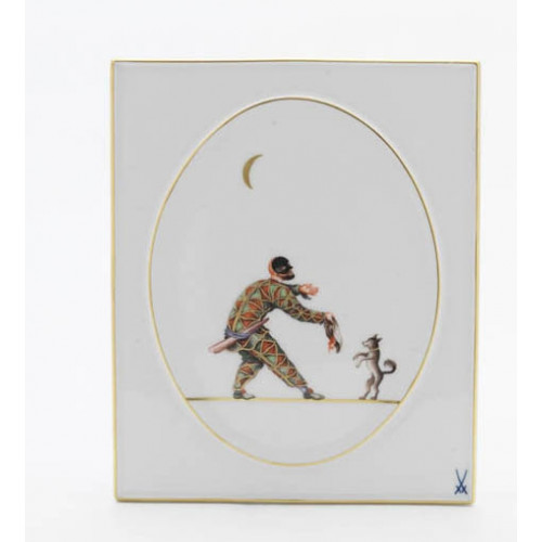 Wandplatte, Figuren d.Italienischen Komödie, bunt mit Kupferfarben,Goldrand, 15 x 18 cm