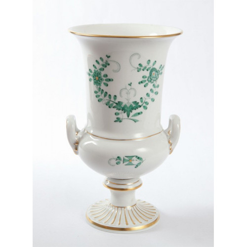 Vase, Indische Malerei 1, ohne Kante, grün, Goldpunkte, Goldrand, H 18,5 cm