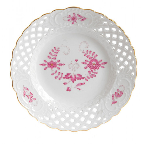 Teller, durchbr., Indische Malerei 1, ohne Kante, purpur, Goldpunkte, Goldrand, ø 15 cm