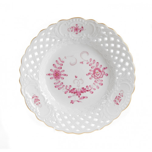 Teller, durchbr., Indische Malerei 1, ohne Kante, purpur, Goldpunkte, Goldrand, ø 21 cm