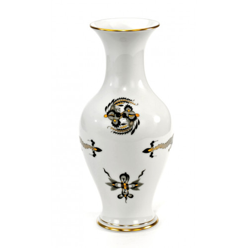 Vase, Form "Neuer Ausschnitt", Reicher Drache, schwarz, goldschattiert, Goldrand, H 24 cm
