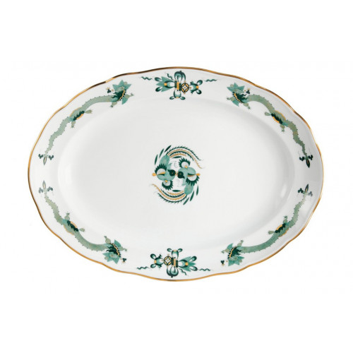 Platte, oval, Reicher Drache, grün, goldschattiert, Goldrand, L 42 cm