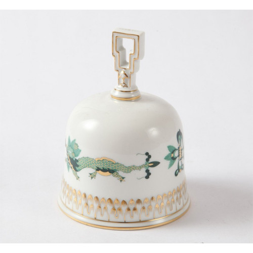 Tischglocke, Reicher Drache, grün, goldschattiert, Goldrand, 10 cm