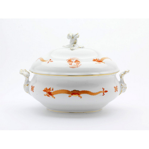 Terrine, oval mit Schnörkel, Reicher Drache, rot, goldschattiert, Goldrand, 4,50 l