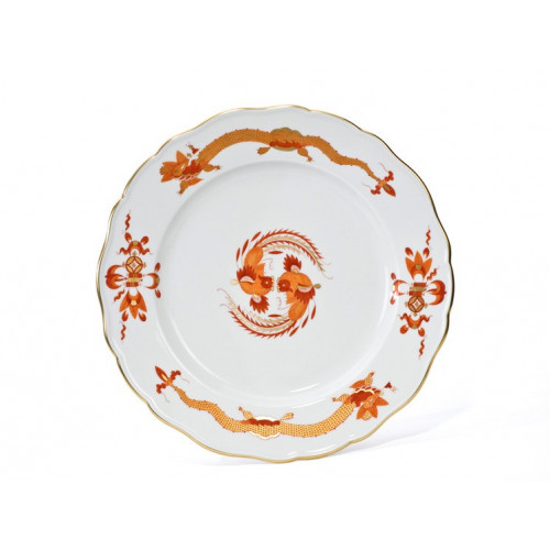 Speiseteller, Form "Neuer Ausschnitt", Reicher Drache, rot, goldschattiert, Goldrand, ø 28 cm