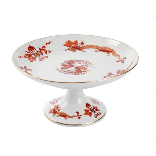 Teller mit Fuß, Reicher Drache, rot, goldschattiert, Goldrand, 10,5x19 cm