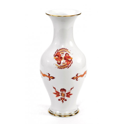 Vase, Form "Neuer Ausschnitt", Reicher Drache, rot, goldschattiert, Goldrand, H 24 cm