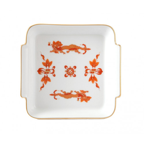 Schälchen, Form "Neuer Ausschnitt", Reicher Drache, rot, goldschattiert, Goldrand, 11x10 cm