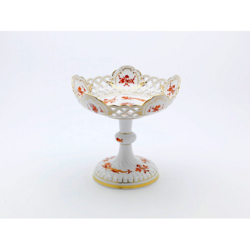 Schale auf Fuß durchbrochen, Reicher Drache, rot, goldschattiert, Goldrand und Goldstaffage, 22 cm