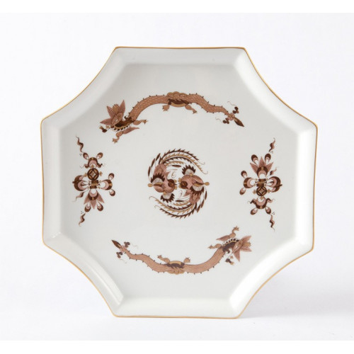 Platte,achteckig, Reicher Drache, braun, goldschattiert, Goldrand, L 21 cm