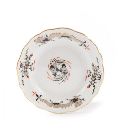 Teller, Reicher Drache, schwarz, rot- und goldschattiert, Goldrand, ø 14 cm