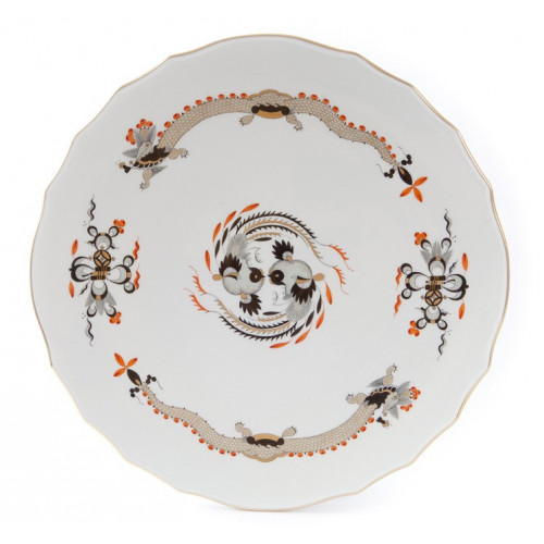 Tortenplatte rund, Reicher Drache, schwarz, rot- und goldschattiert, Goldrand, ø 32 cm