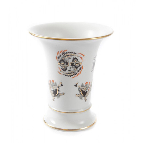 Vase, Reicher Drache, schwarz, rot- und goldschattiert, Goldrand, H 14 cm