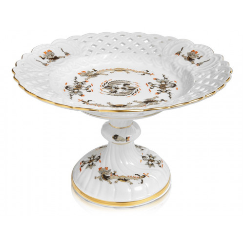 Schale auf Fuß durchbrochen, Reicher Drache, schwarz, rot- und goldschattiert, Goldrand, H 14 cm