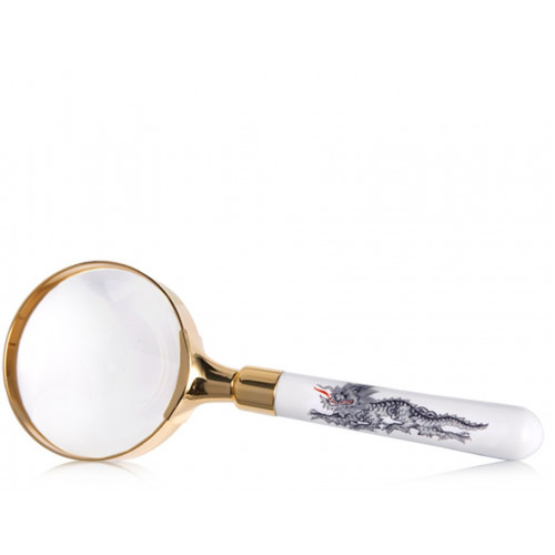 Lupe, Ming-Drache, reich, schwarz, ohne Kante, weißer Rand, L 17,5 cm