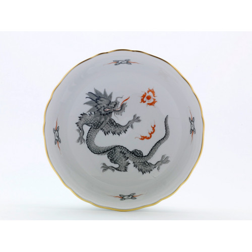 Schüssel, rund, Form "Neuer Ausschnitt", Ming-Drache, reich, schwarz, ohne Kante, Goldrand, ø 22,5 cm
