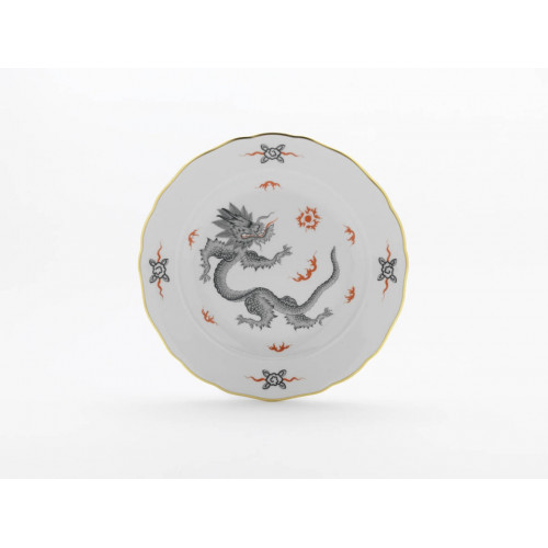 Speiseteller, Form "Neuer Ausschnitt", Ming-Drache, reich, schwarz, ohne Kante, Goldrand, ø 25 cm