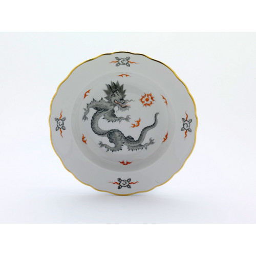 Suppenteller, Ming-Drache, reich, schwarz, ohne Kante, Goldrand, ø 24 cm