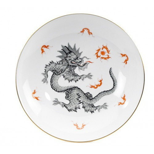 Untertasse zu 10633, Ming-Drache, reich, schwarz, ohne Kante, Goldrand