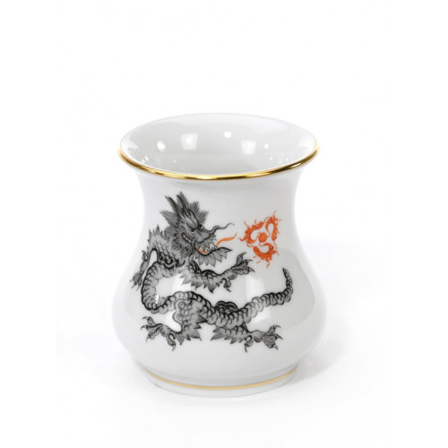 Vase, Form "Neuer Ausschnitt", Ming-Drache, reich, schwarz, ohne Kante, Goldrand, H 6 cm