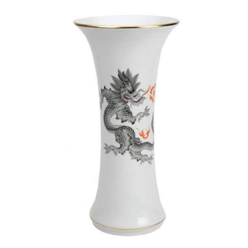 Vase, Form "Neuer Ausschnitt", Ming-Drache, reich, schwarz, ohne Kante, Goldrand, H 25 cm