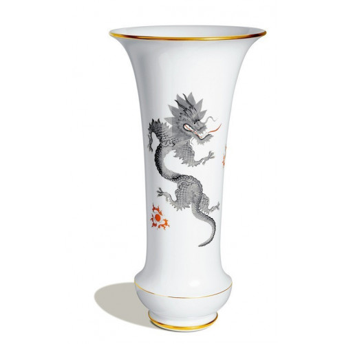 Vase, Ming-Drache, reich, schwarz, ohne Kante, Goldrand, H 41 cm