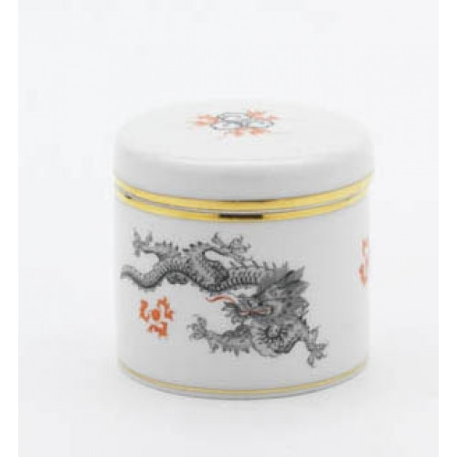 Dose, Form "Neuer Ausschnitt", Ming-Drache, reich, schwarz, ohne Kante, Goldrand, ø 6 cm