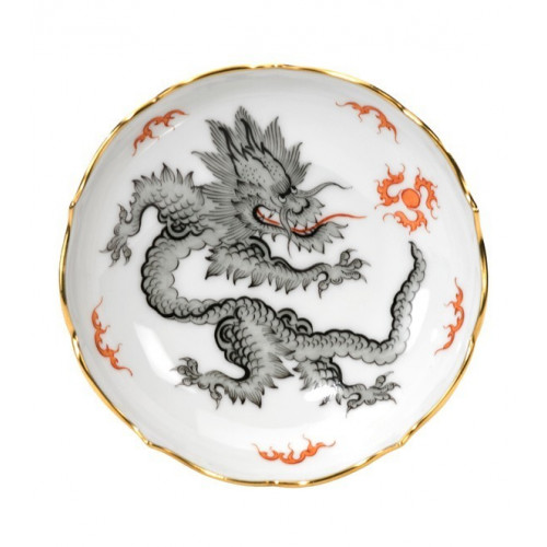 Schälchen, Form "Neuer Ausschnitt", Ming-Drache, reich, schwarz, ohne Kante, Goldrand, ø 8 cm