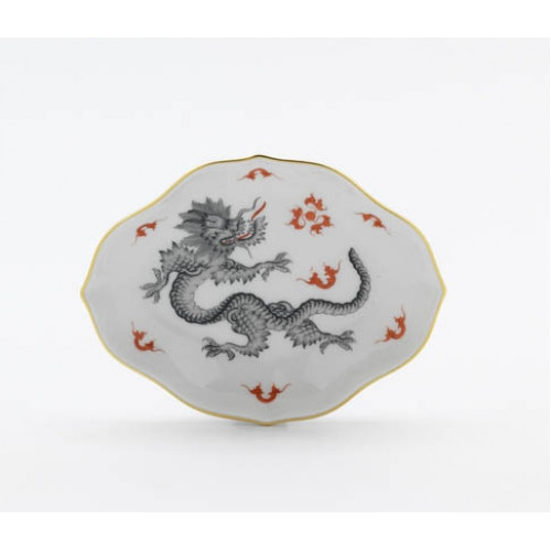 Schälchen, Form "Neuer Ausschnitt", Ming-Drache, reich, schwarz, ohne Kante, Goldrand, L 12 cm