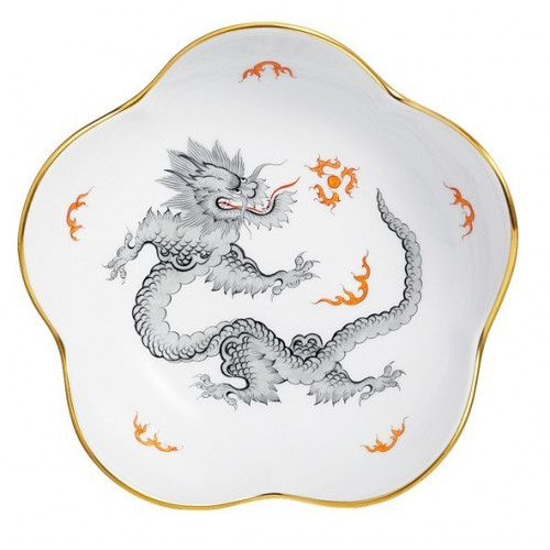 Schälchen, Form "Neuer Ausschnitt", Ming-Drache, reich, schwarz, ohne Kante, Goldrand, ø 14 cm