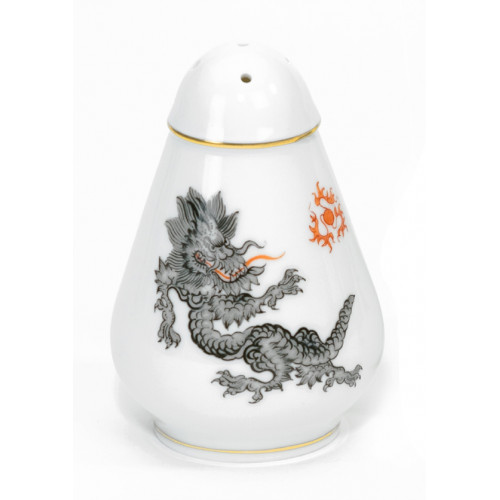Salzstreuer, Form "Neuer Ausschnitt", Ming-Drache, reich, schwarz, ohne Kante, Goldrand, H 7 cm