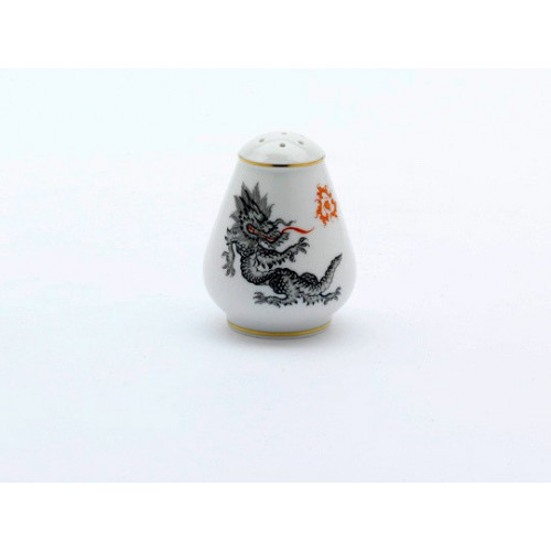 Pfefferstreuer, Form "Neuer Ausschnitt", Ming-Drache, reich, schwarz, ohne Kante, Goldrand, H 6 cm