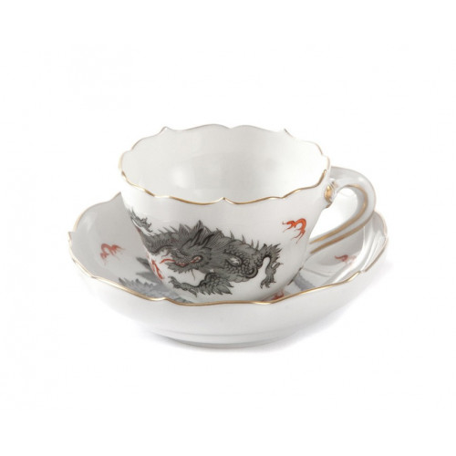 Miniaturtasse Neuer Ausschnitt, Ming-Drache, reich, schwarz, ohne Kante, Goldrand, 0,04 l