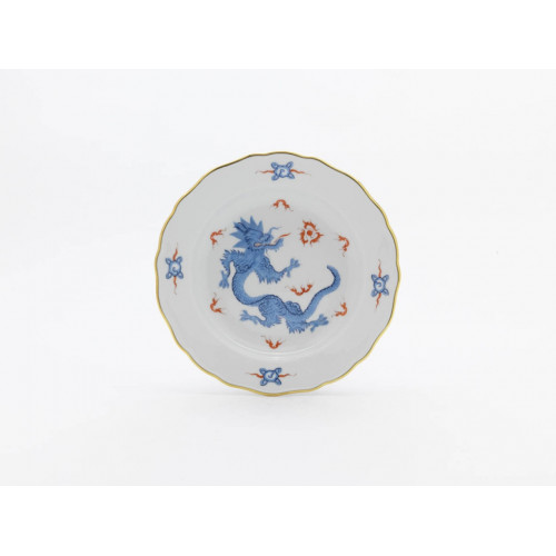 Teller, Ming-Drache, reich, hellblau, ohne Kante, Goldrand, ø 20 cm