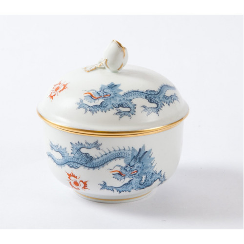 Zuckerdose, Ming-Drache, reich, hellblau, ohne Kante, Goldrand, Ø 9 cm