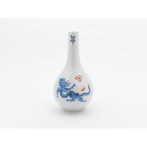 Vase, Ming-Drache, reich, hellblau, ohne Kante, Goldrand, H 24,5 cm