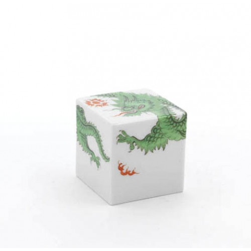 Würfel, Ming-Drache, reich, grün, ohne Kante, weißer Rand
