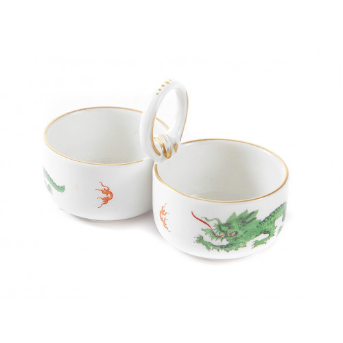 Salzgefäß, Ming-Drache, reich, grün, ohne Kante, Goldrand, L 10 cm