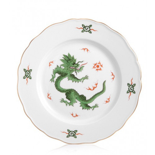 Speiseteller, Ming-Drache, reich, grün, ohne Kante, Goldrand, ø 28 cm
