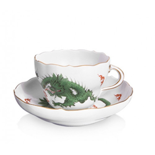 Kaffeetasse m.U., Ming-Drache, reich, grün, ohne Kante, Goldrand, V 0,20 l