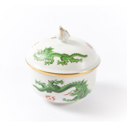 Zuckerdose, Ming-Drache, reich, grün, ohne Kante, Goldrand, Ø 9 cm