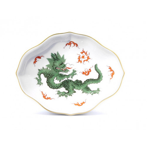 Schälchen, Ming-Drache, reich, grün, ohne Kante, Goldrand, L 12 cm