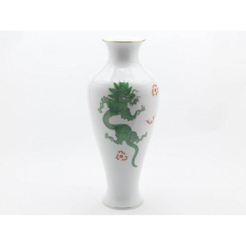 Vase, Ming-Drache, reich, grün, ohne Kante, Goldfaden stark und schwach, H 57 cm