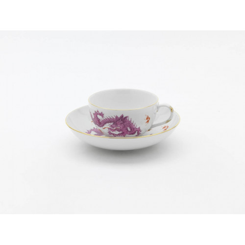 Milchkaffeetasse, Ming-Drache, reich, purpur, ohne Kante, Goldrand, H 10 cm
