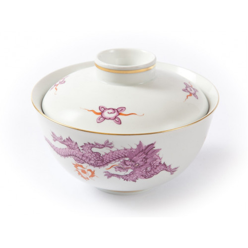 Schüssel m.Deck., Ming-Drache, reich, purpur, ohne Kante, Goldrand, H 9,4 cm