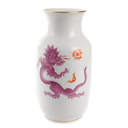 Vase, Ming-Drache, reich, purpur, ohne Kante, Goldrand, H 30 cm